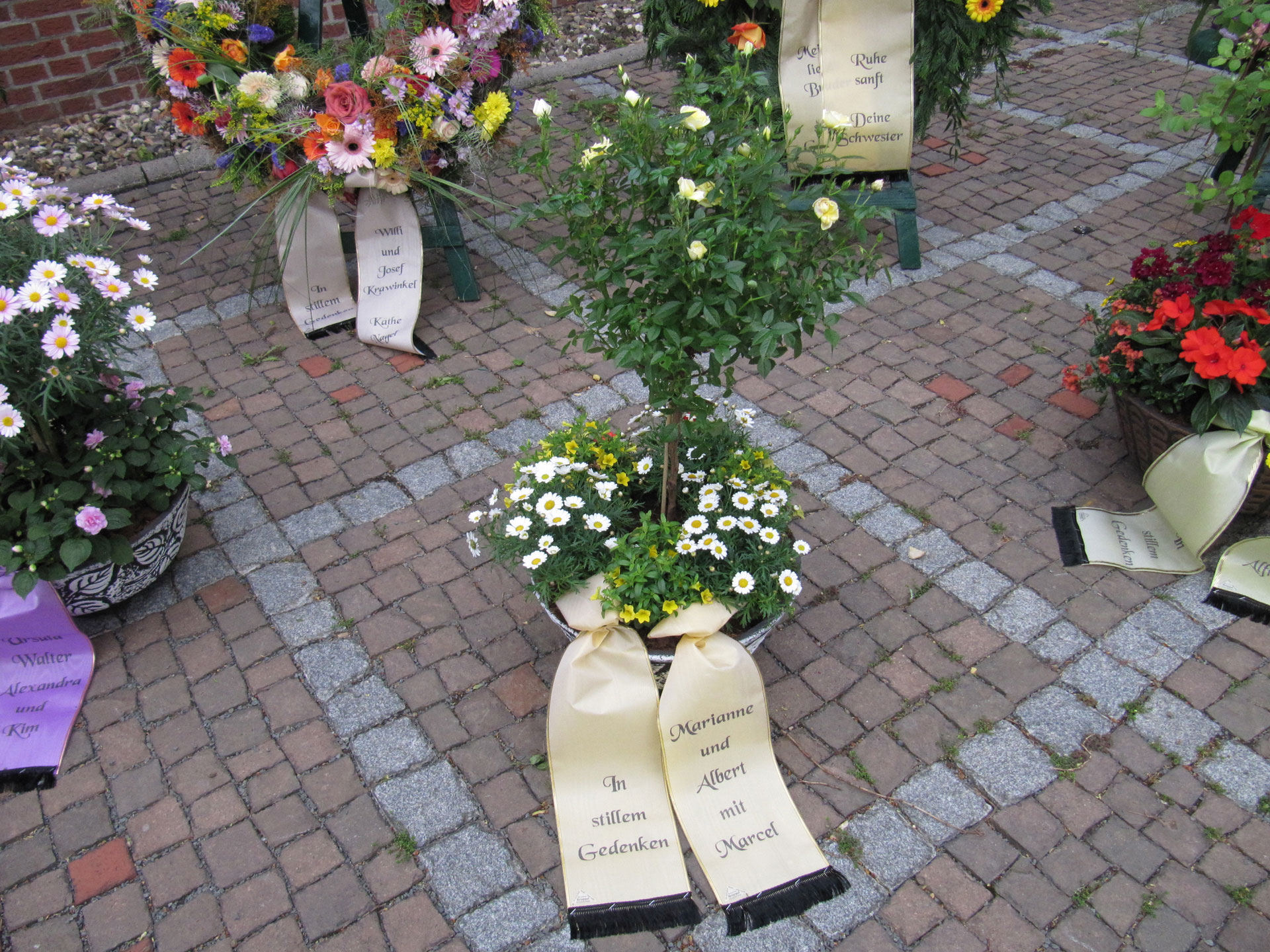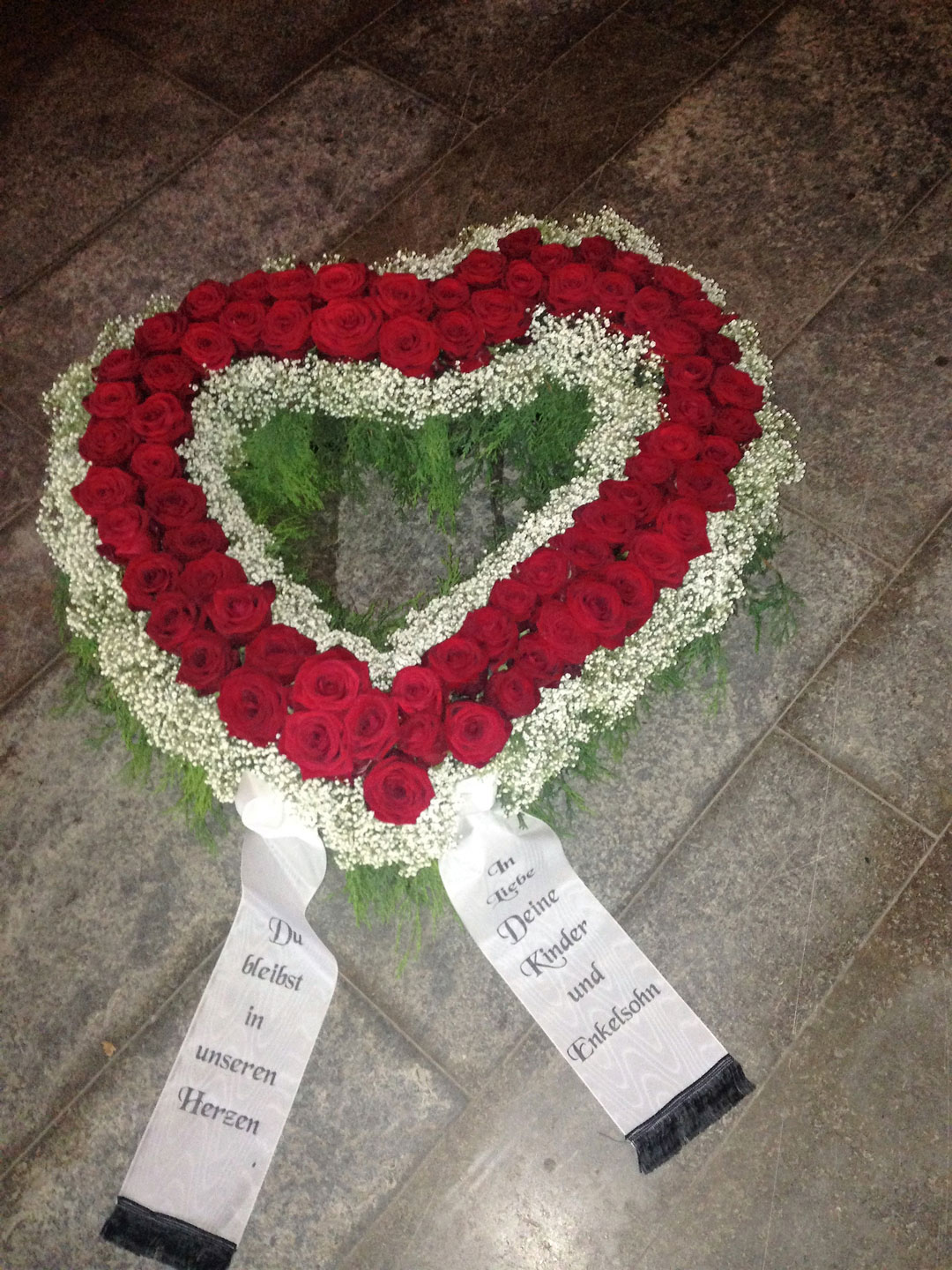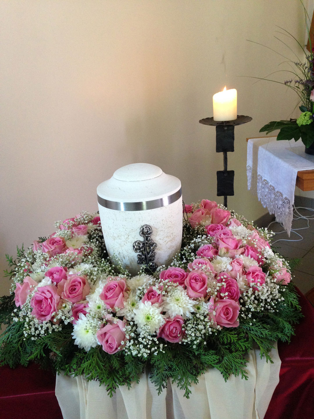 Sie planen eine individuelle Trauerfeier mit Blumen und Pflanzen Ihrer Wahl? Dann sind Sie bei uns richtig. Dem Abschied angemessen kreieren wir Kränze, Gestecke, Urnendekorationen und Sargauflagen sowie die komplette Kirchen- oder Hallendekoration.